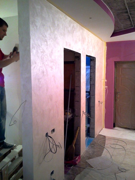 -Венецианская штукатурка в интерьере (индивидуальный подход в бежево-серых тонах),